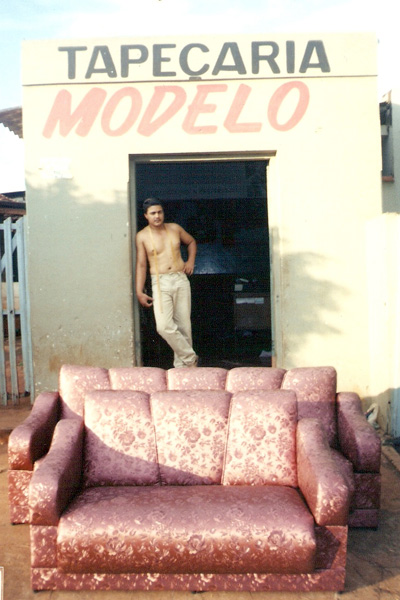 Contratei um funcionário para me auxiliar, e na época não era moleza, pois o nosso espaço físico era de mais ou menos uns dezoito metros quadrados e tínhamos que trabalhar na rua, em cima do passeio. Quando chovia, tínhamos que guardar todos os estofados dentro do cômodo e ficávamos parados porque não tinha espaço para trabalhar. Buscávamos sofás de carroça e muitas vezes, quando procurávamos o carroceiro, ele dizia que o cavalo estava sumido ou doente e que tínhamos que esperar. Para olhar serviço então, era a pé mesmo, às vezes eu ficava o dia inteiro para ir a um só endereço porque era muito longe.